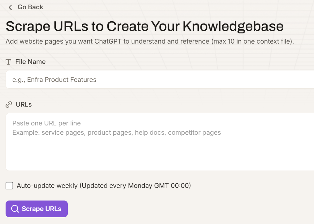 Because the URLs are part of the Knowledgebase, ChatGPT knows which pages exist and what they’re about, so suggested links are usually correct.
